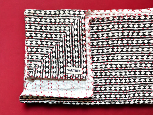 Discover our exquisite Hand Block and Kantha bedspreads, blending two traditional craft techniques. Each piece reflects the artisan's dedication and skill, embodying the rich cultural heritage. Experience the lightweight comfort and the artistry made of 100% premium cotton.