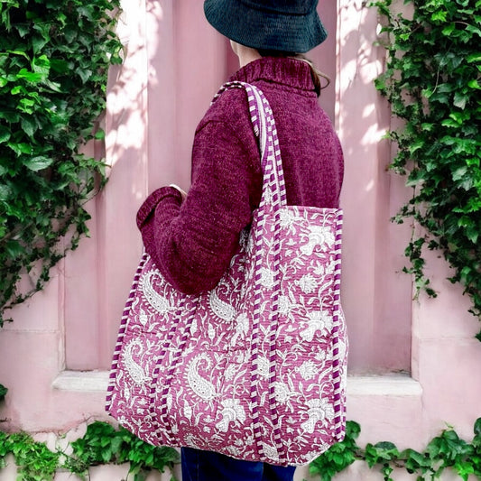 Paisley in Fuchsia Hand Block Printed Tote Bag