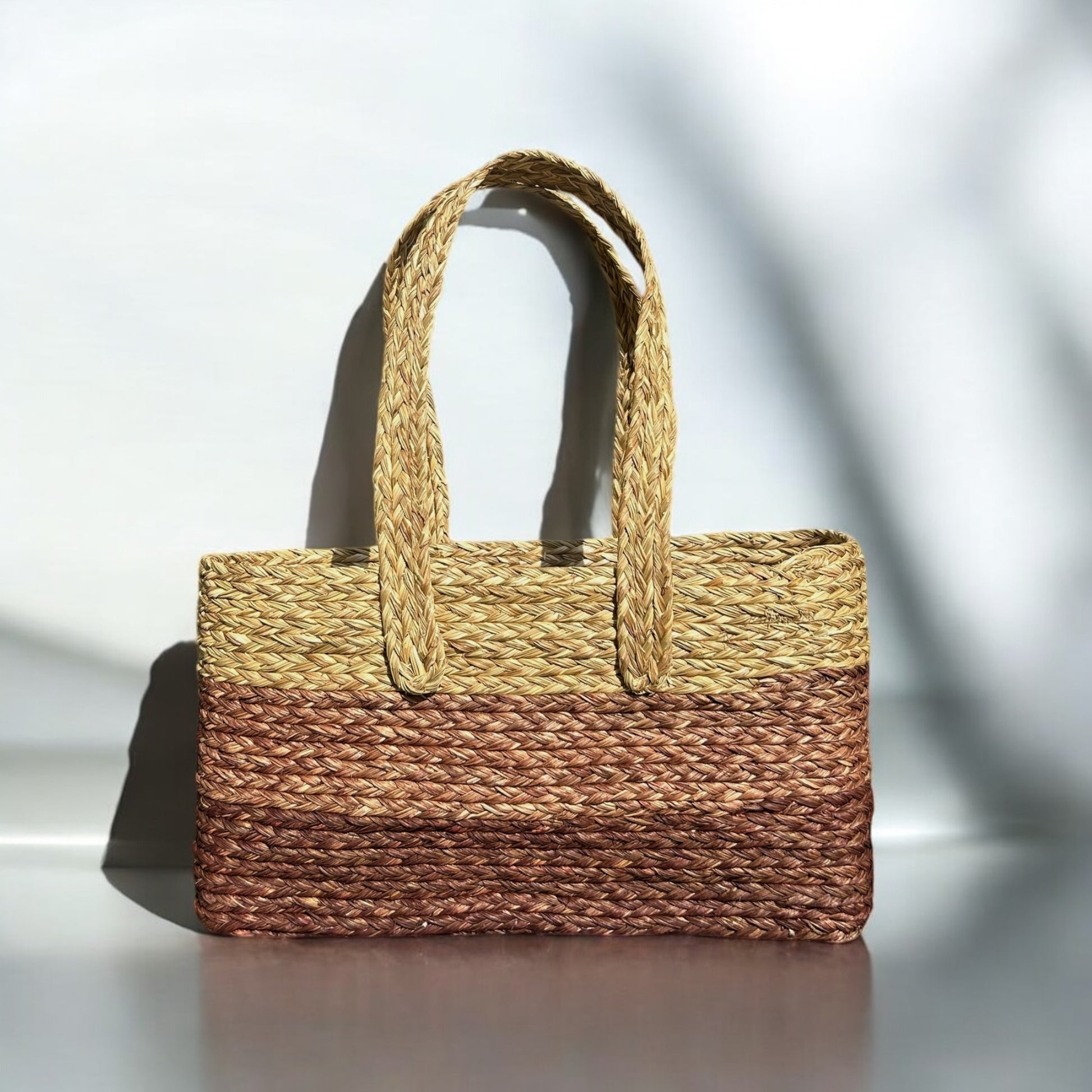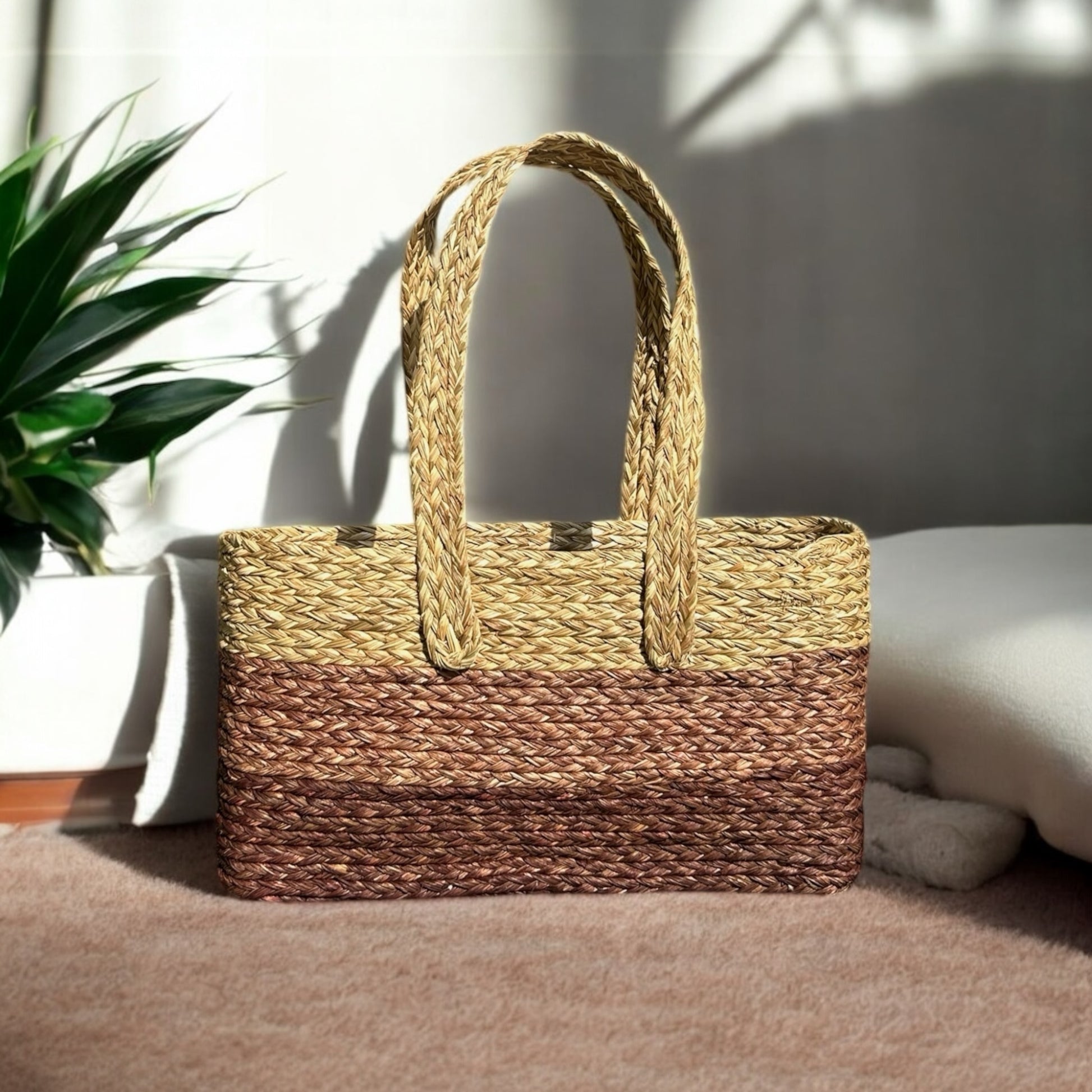 This bag is crafted from Sabai grass, a rough natural fiber abundantly found in the forest fringes of West Bengal. Traditionally dyed with natural and vegetable dyes, artisans now use Azo-free dyes to achieve vibrant, eco-friendly colors. The growing craft of Sabai weaving has transformed local livelihoods, making this bag a truly sustainable choice.